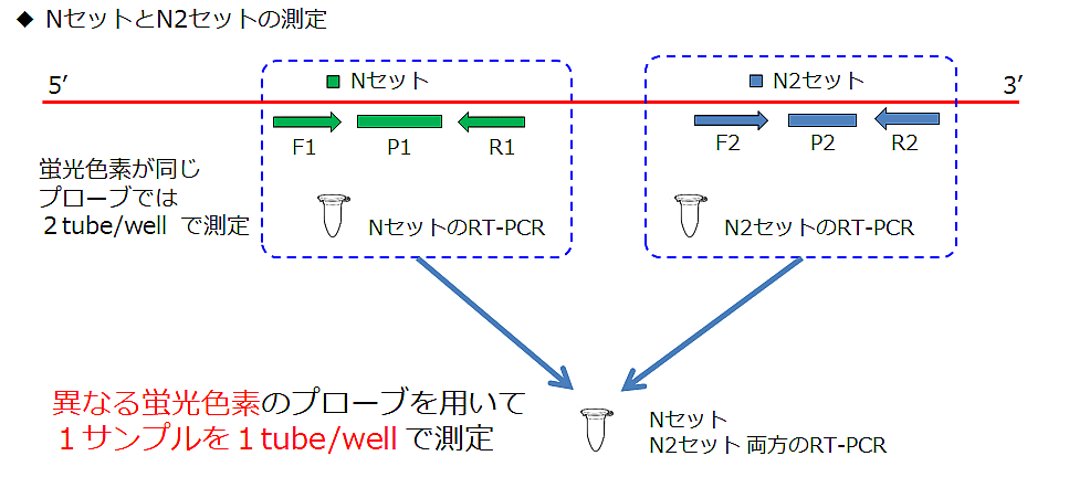 国立感染症研究所のマニュアルでは、一つのサンプルに対してNセットとN2セットのPCRを実施することになっていますが、やむを得ない場合に限り、N2セットのPCRのみを実施する運用例も掲載されています。