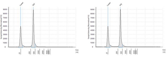 電気泳動およびOne-step RT-qPCRにより品質確認を行っております。